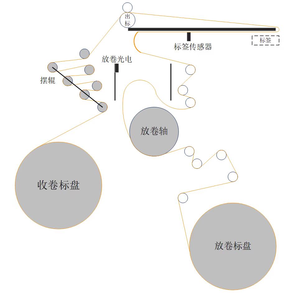 圖4是送標機構的表示圖,它是將標簽放卷、牽引、送出、裁切的機構組成,能夠或許或許或許由多品種型的標站,接納收放卷的高速活動節制手藝來保證不變的張力,覺得精準送標、切標供給保證。